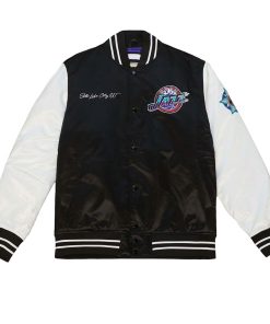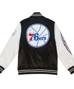NBA Philadelphia 76ers Mitchell & Ness Team Origins Satin Full-Snap Varsity Jacket – Black by TJS
