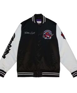 NBA Men’s Toronto Raptors Mitchell & Ness Black Team Origins Satin Full-Snap Varsity Jacket by TJS
