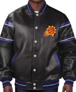 NBA Men’s Mitchell & Ness BlackWhite Phoenix Suns Team Origins Satin Full-Snap Varsity Jacket by TJS