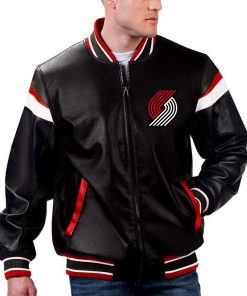 NBA Men’s Portland Trail Blazers Starter Red Home Game Satin Full-Snap Varsity Jacket by TJS