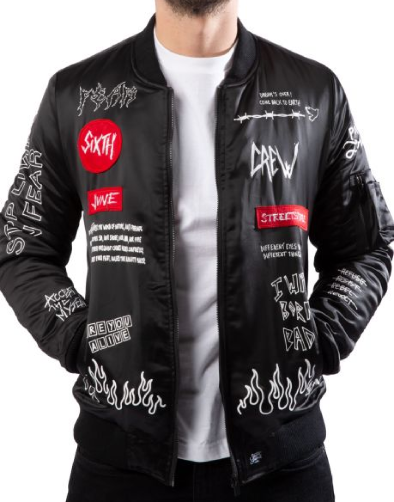 Crew Patches Black Bomber Jacket