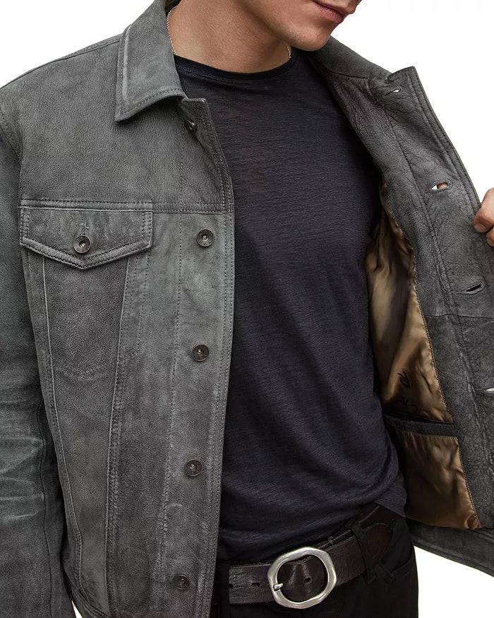 John Varvatos Andrew Slim Fit Leather Trucker Jacket