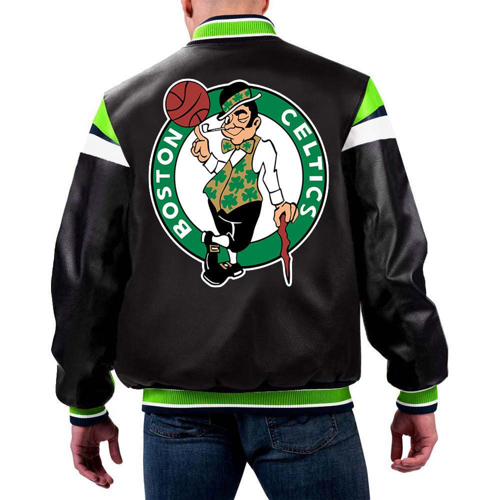 Buy and show your support for the Boston Celtics with this NBA leather jacket from TJS. Made with high-quality leather, it features the iconic team logo and colors for a classic and timeless look. Perfect for any basketball fan, this jacket is a must-have addition to your wardrobe.