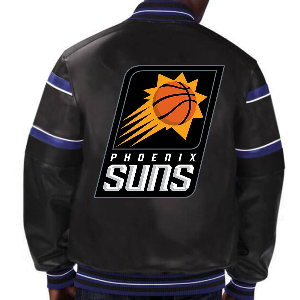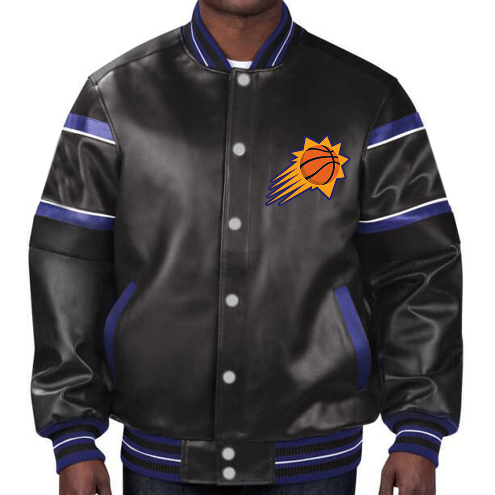 Buy the NBA Phoenix Suns Leather Jacket by TJS is the ultimate choice for fans who want to show off their team spirit. Made from high-quality leather, this jacket features the iconic Phoenix Suns logo and colors. Stay warm and stylish while supporting your team.