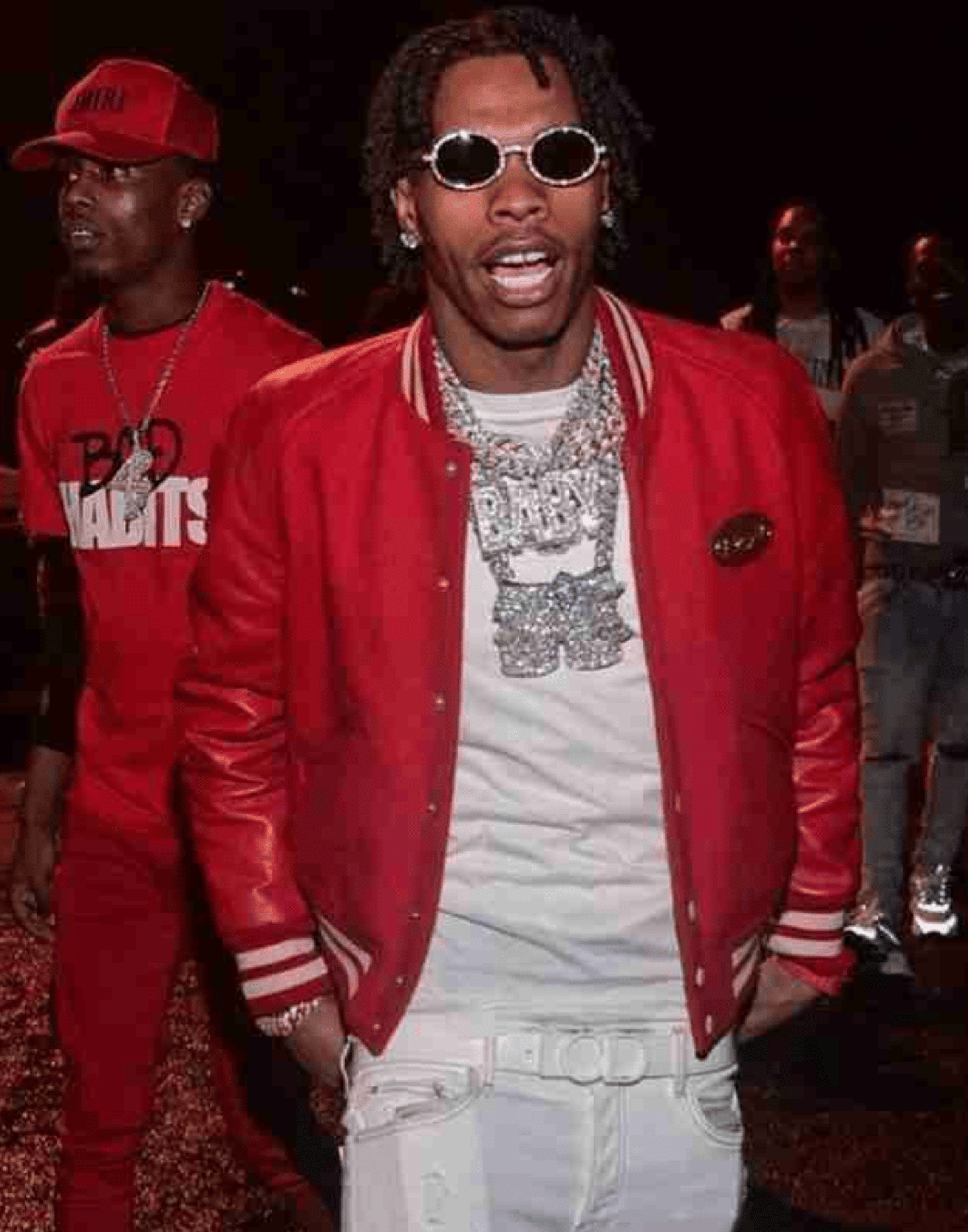 Red And Black Lil Baby Leather Varsity Jacket