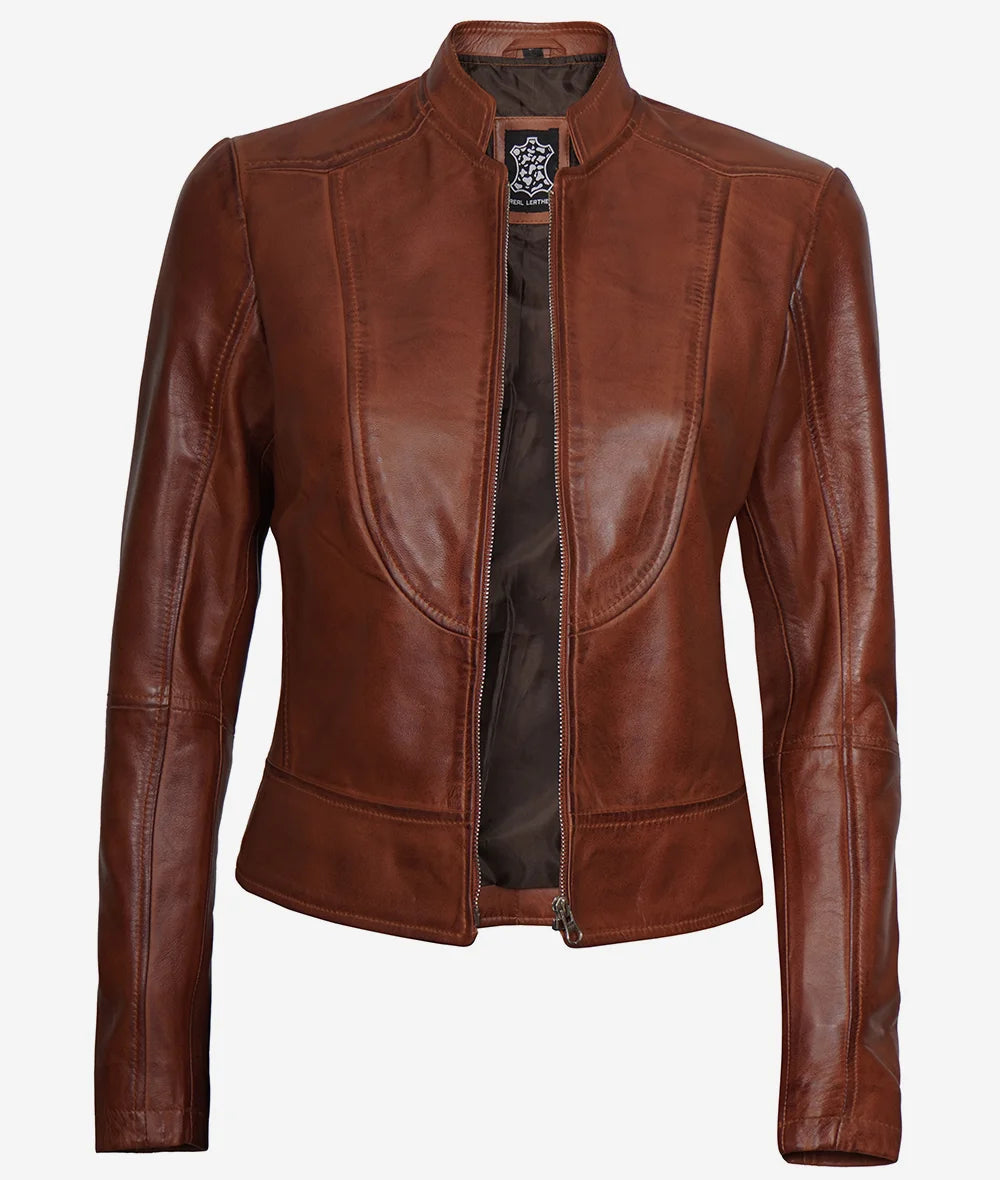 Women’s Cognac Slim Fit Leather Biker Jacket