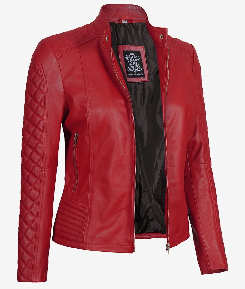 Women’s Red Quilted Cafe Racer Real Leather Jacket