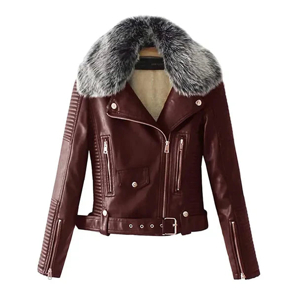 Women’s Shearling Faux Fur Quilted Leather Jacket