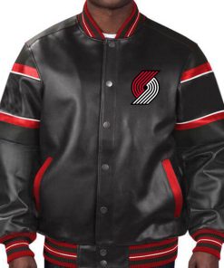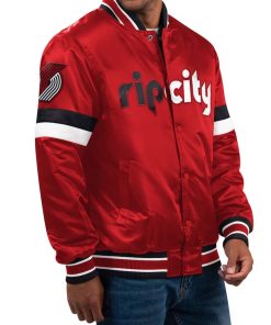 NBA Men’s Portland Trail Blazers Starter Red Home Game Satin Full-Snap Varsity Jacket by TJS