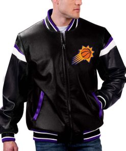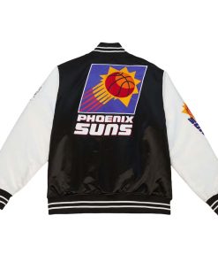 NBA Men’s Mitchell & Ness BlackWhite Phoenix Suns Team Origins Satin Full-Snap Varsity Jacket by TJS