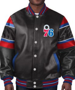 NBA Philadelphia 76ers Mitchell & Ness Team Origins Satin Full-Snap Varsity Jacket – Black by TJS