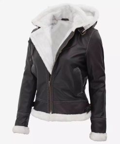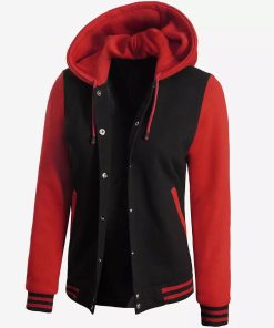Women’s Black and Red Hooded Varsity Jacket – Baseball Style