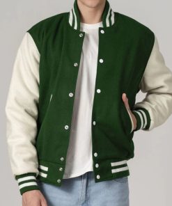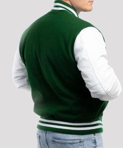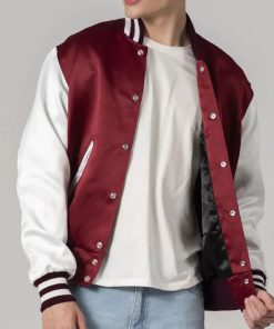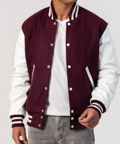 Maroon Wool Varsity Jacket with Bright White Leather Sleeves