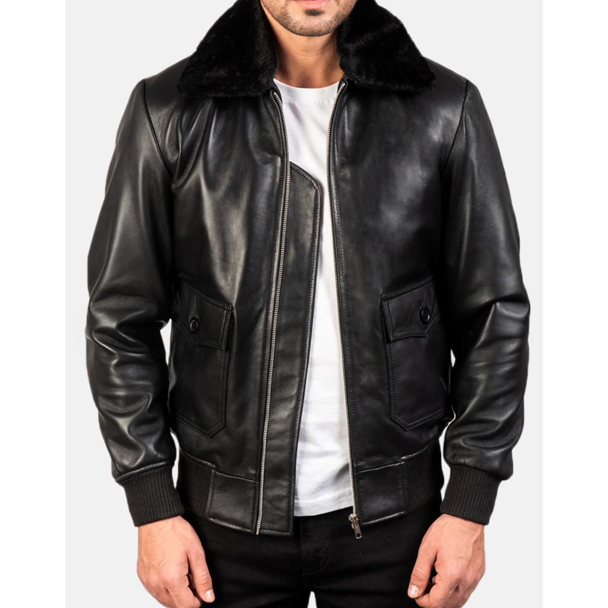 Airin G-1 Black Leather Bomber Jacket