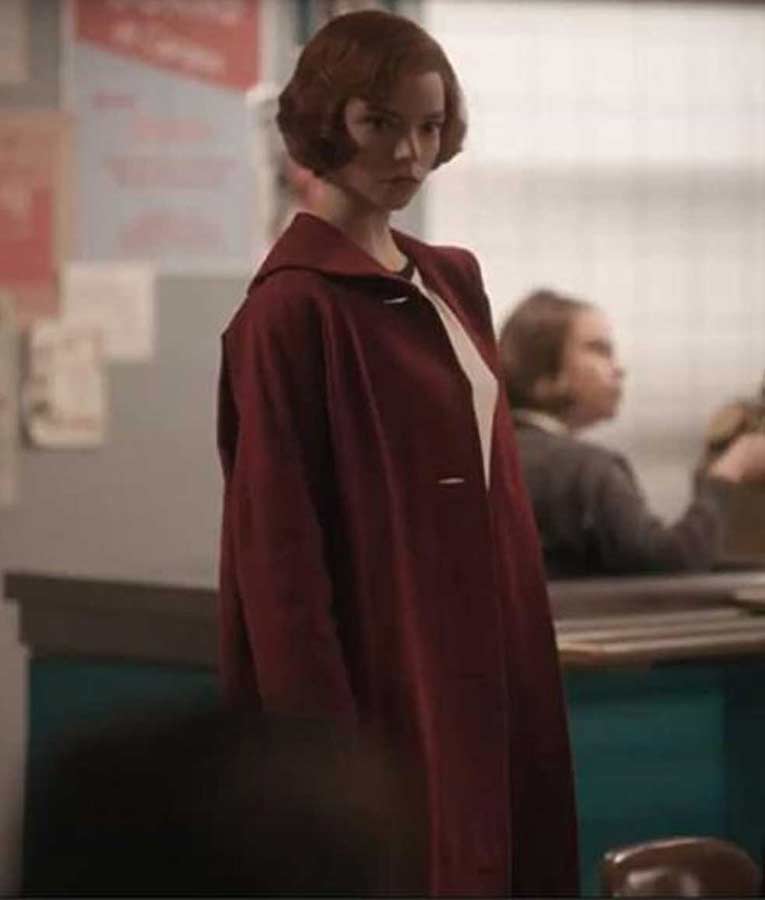 Anya Taylor-Joy The Queens Gambit Beth Harmon Red Coat