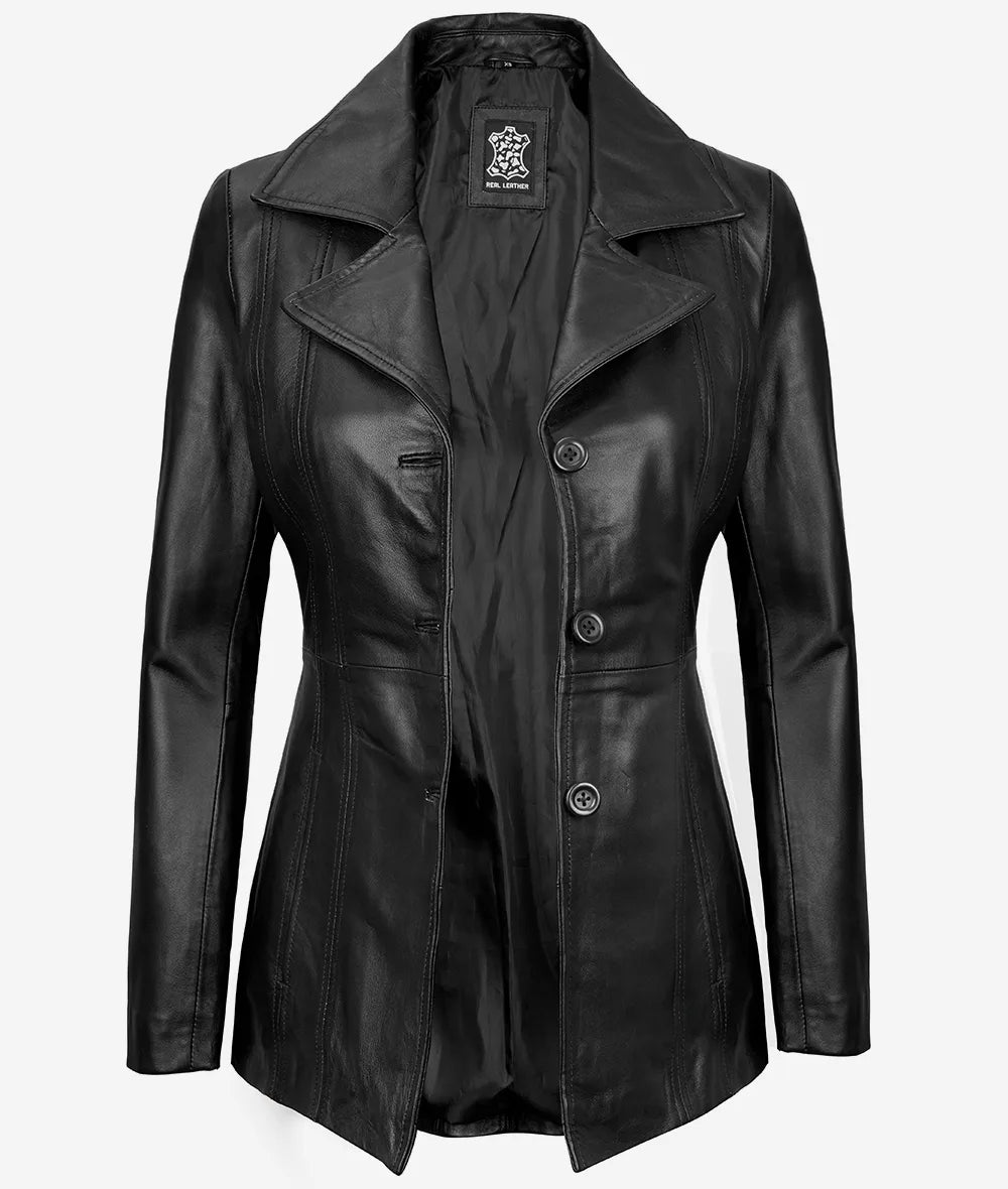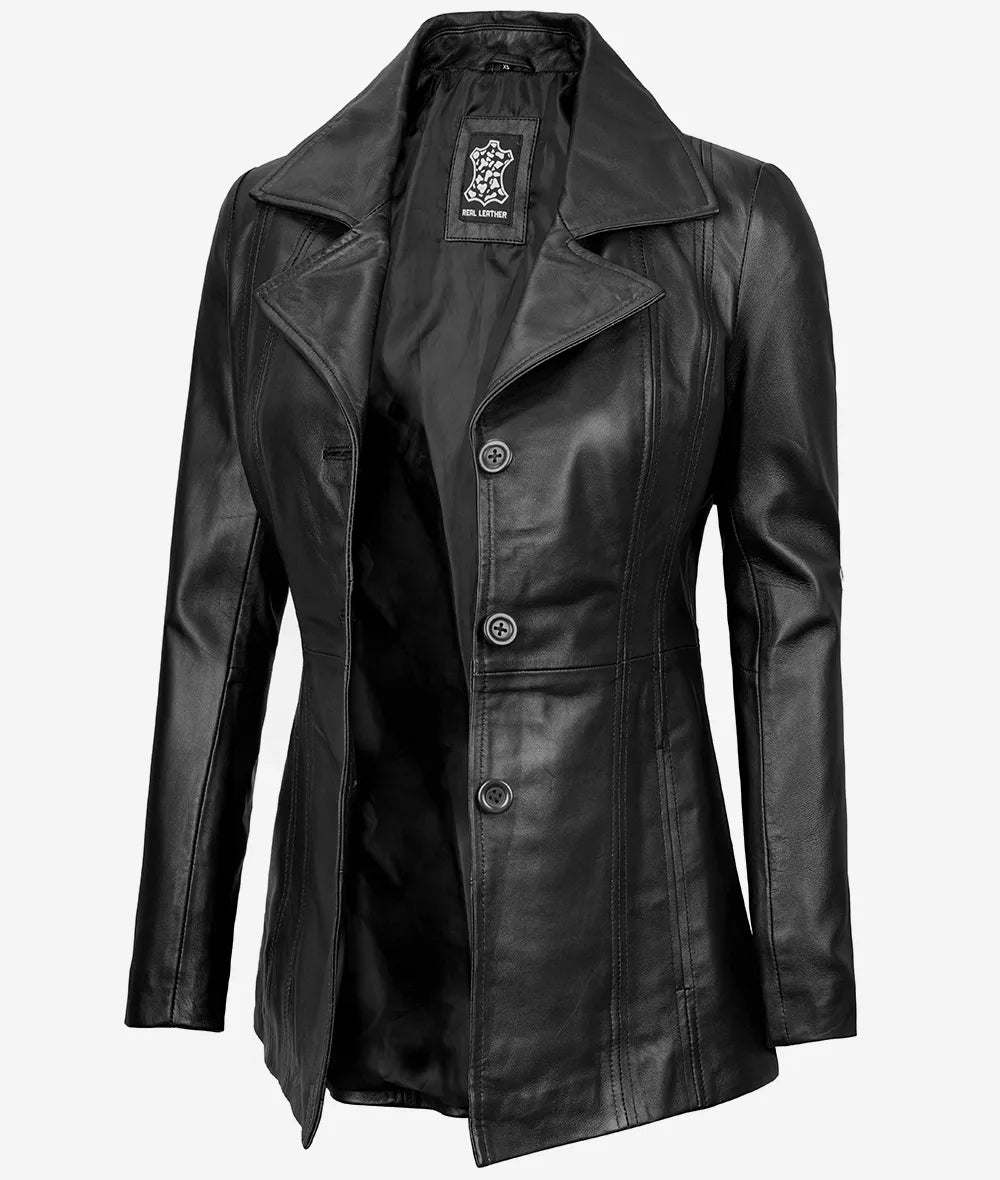 Bitonto Women’s Black 3/4 Length Leather Coat