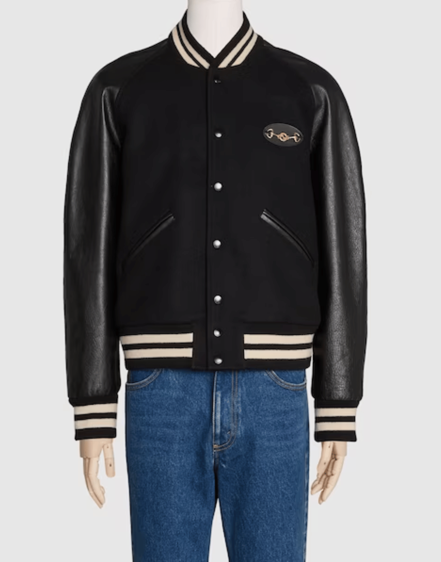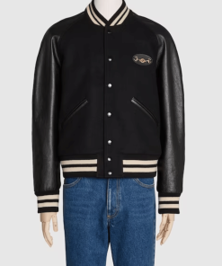 Black Felt And Leather Bomber Jacket