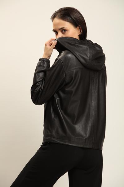 Black Leather Jacket With Detachable Hood Women