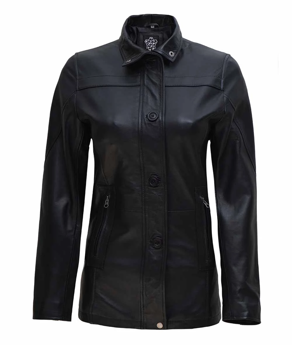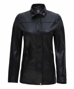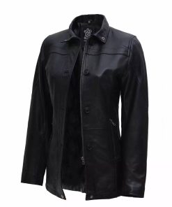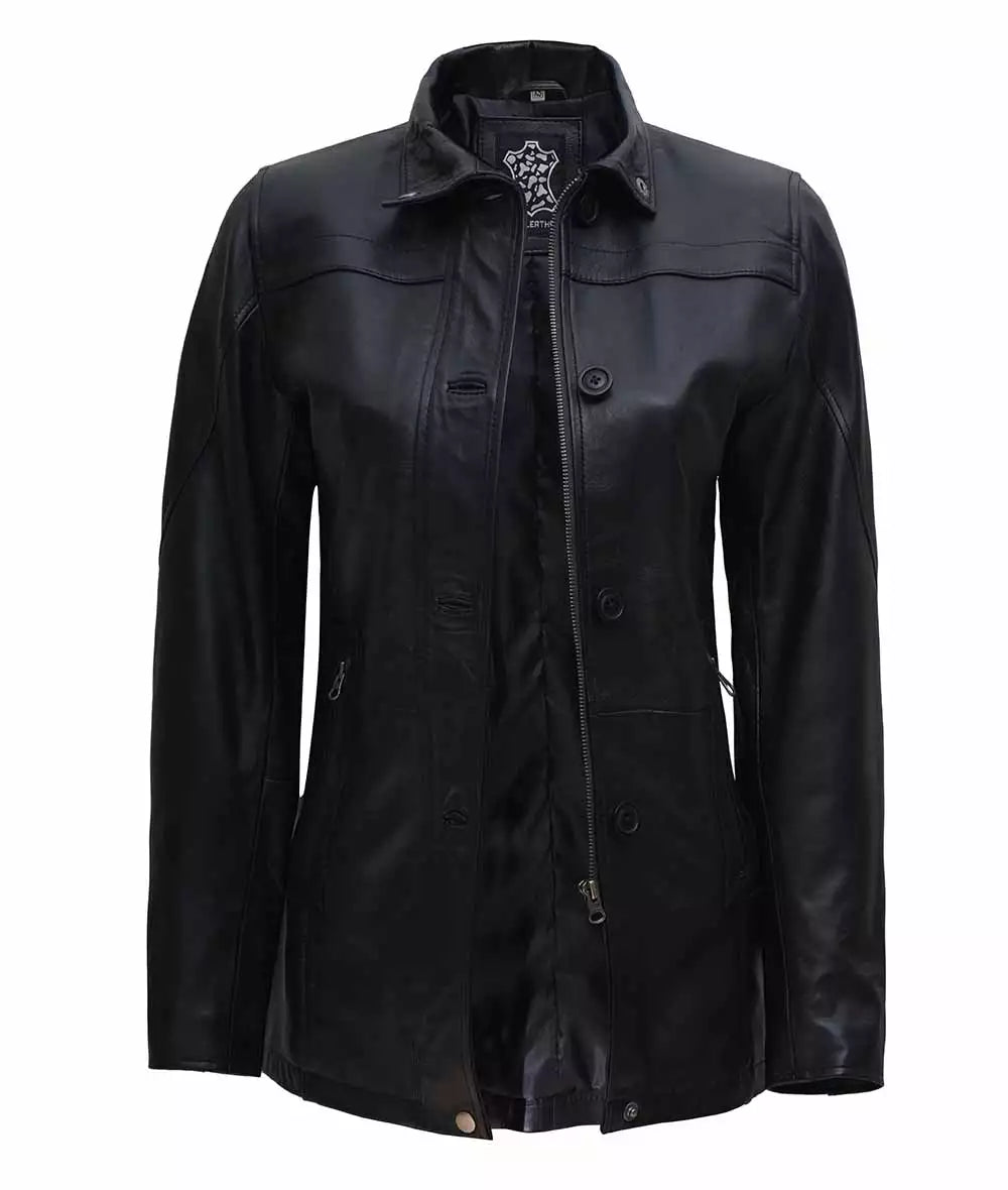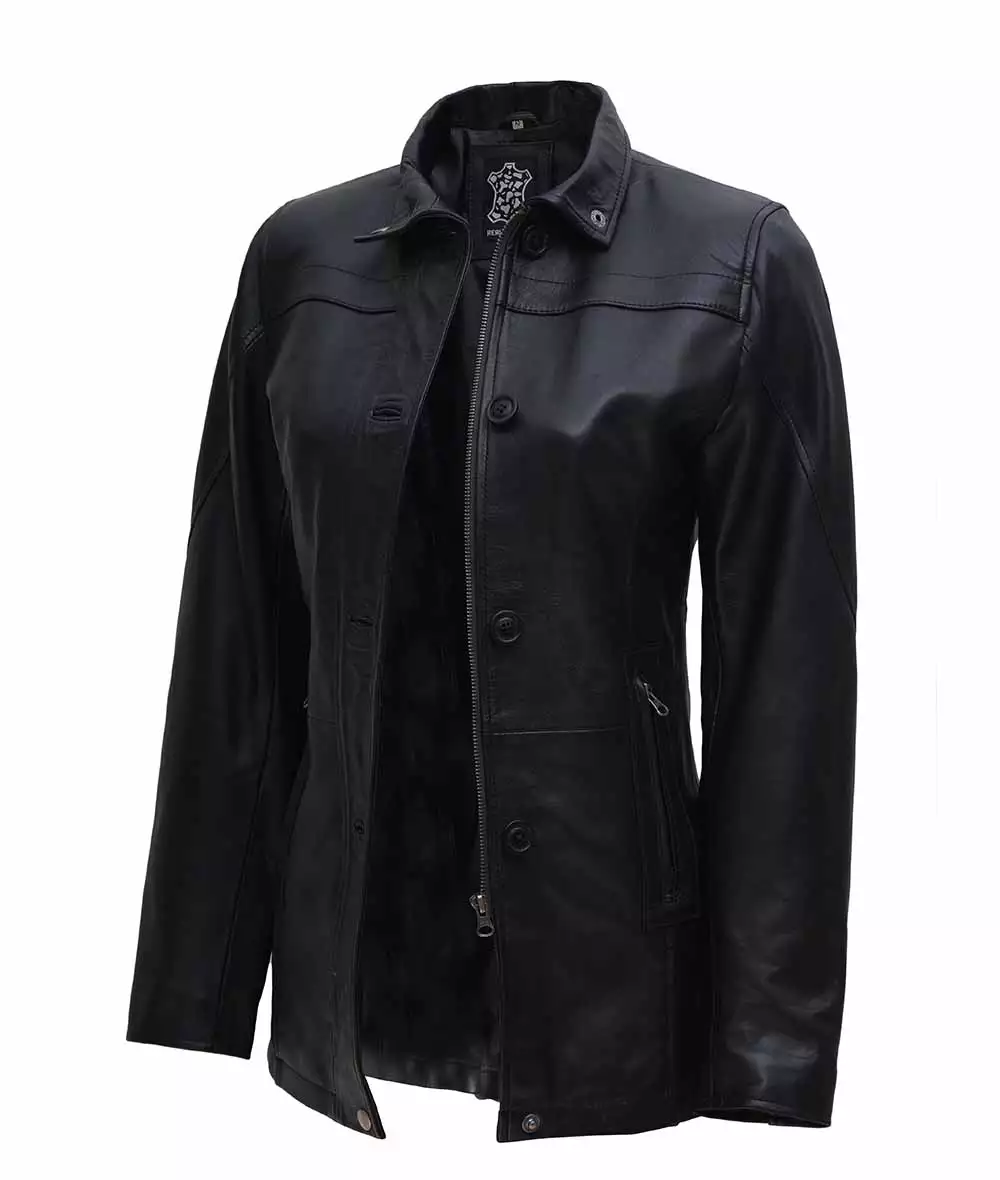 Bristol Women’s Black 3/4 Length Leather Car Coat