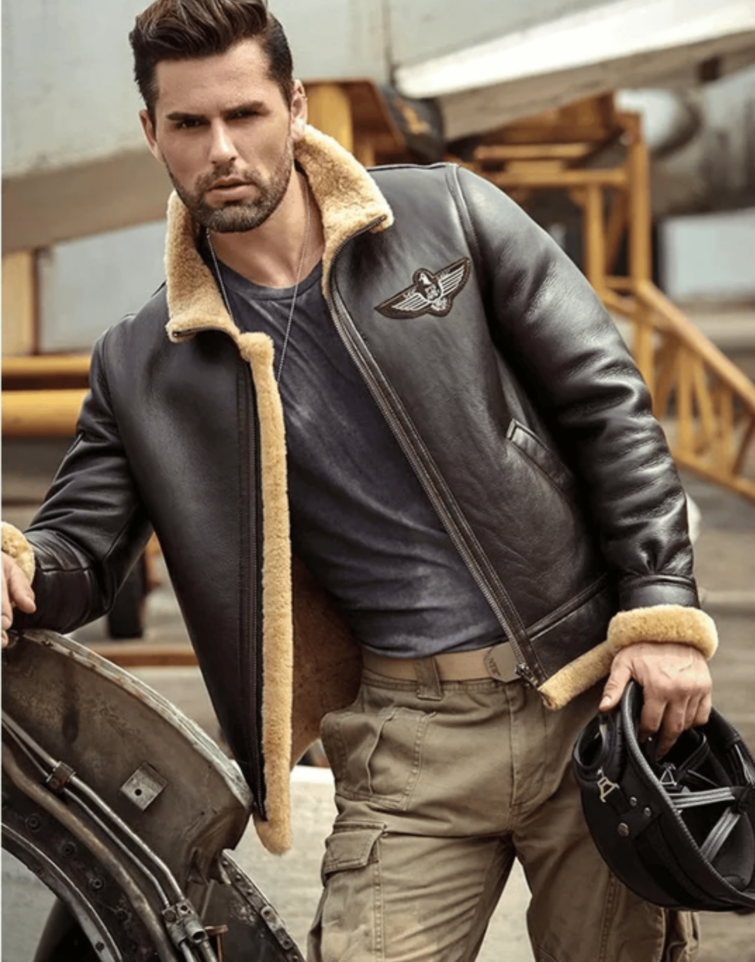 Brown RAF Aviator Airforce Sheepskin Shearling Leather Jacket