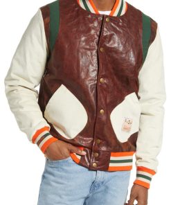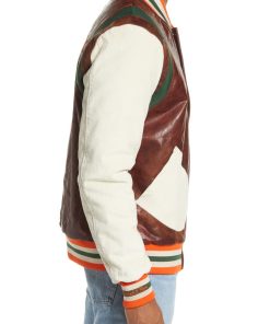 Leather with 97% cotton, 3% elastane and 70% acrylic, 30% wool contrasts