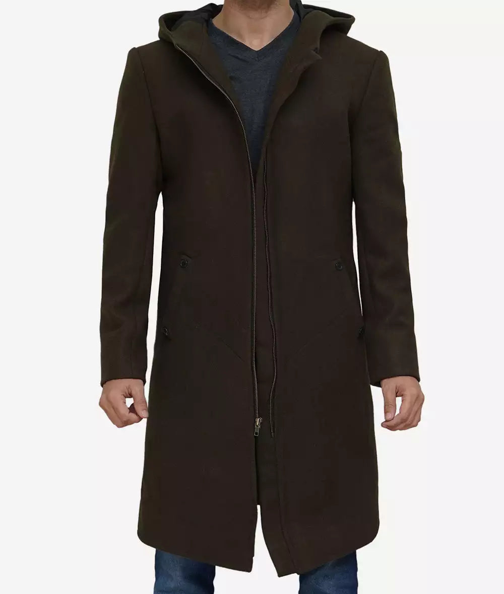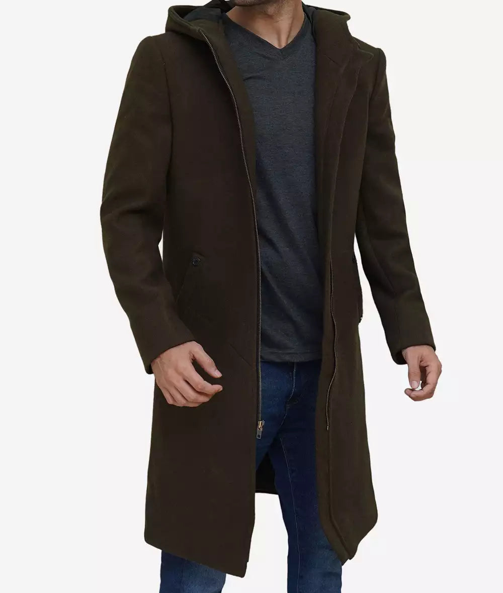 Delbert Men’s Olive Green Premium Wool Coat with Hood