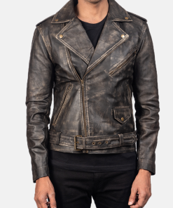 Distressed Brown Allaric Alley Biker Leather Jacket