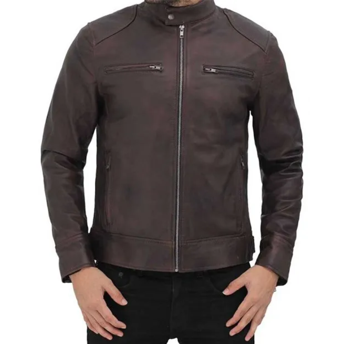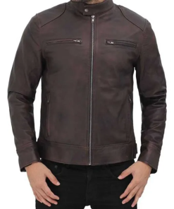 Dodge Men Brown Cafe Racer Leather Jacket