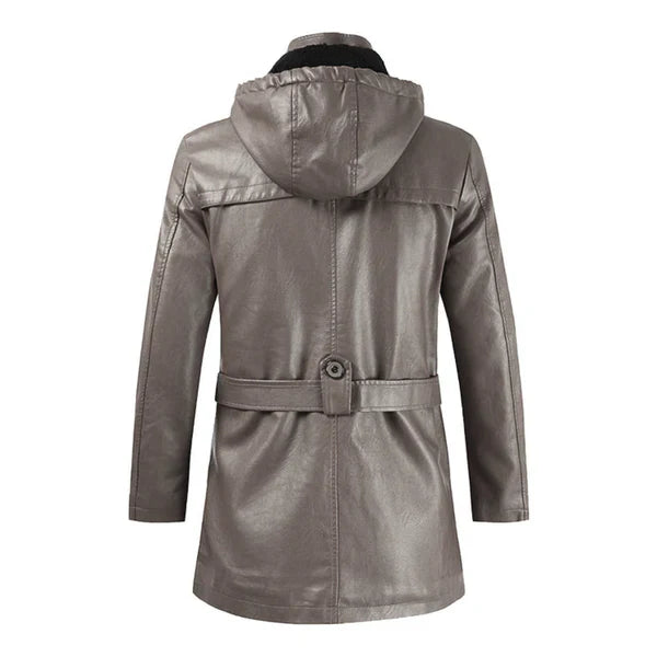 Fashionable Hooded Brown Long Motorcycle Leather Coat