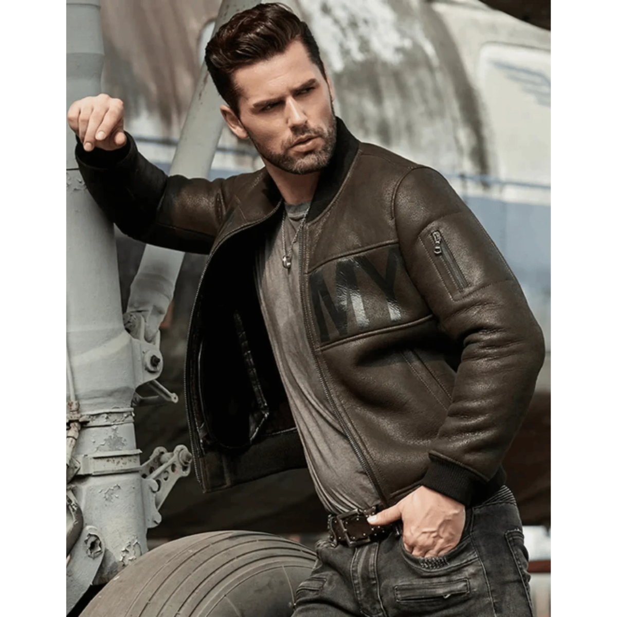 Green B3 Flight Sheepskin Leather Jacket
