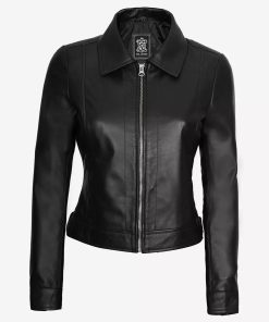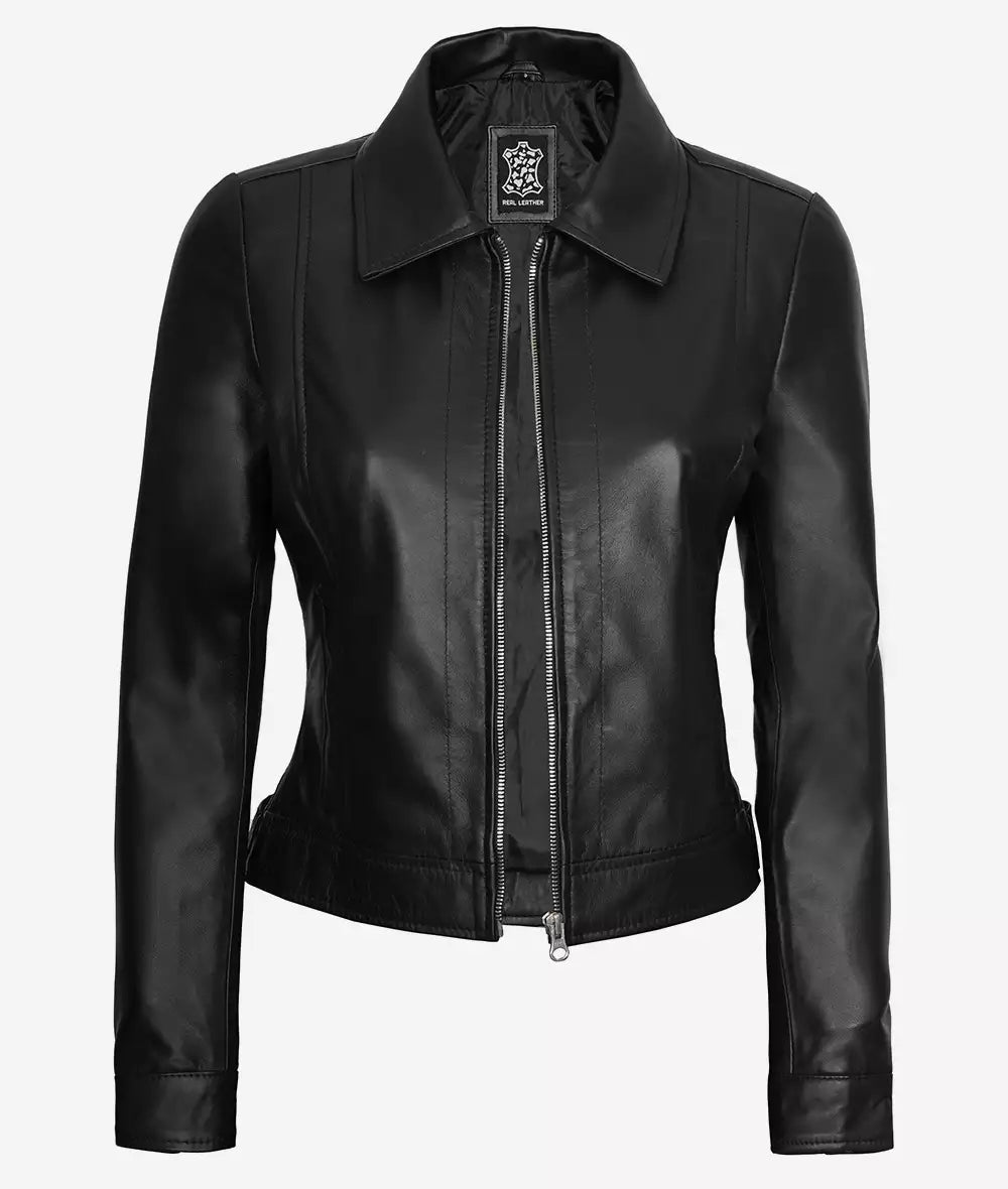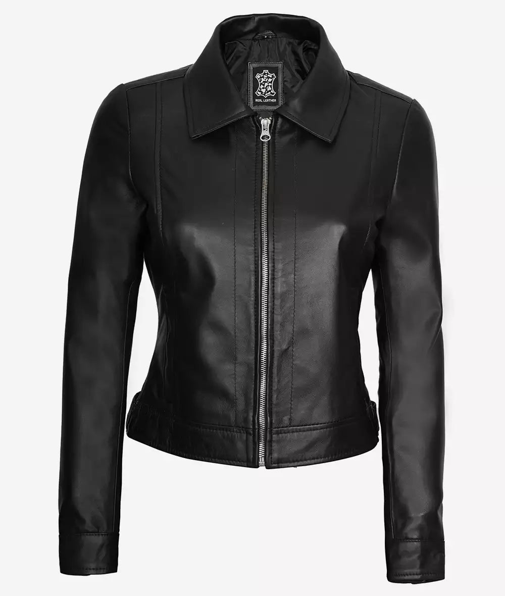 Jose Women’s Black Harrington Shirt Collar Leather Jacket