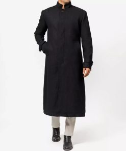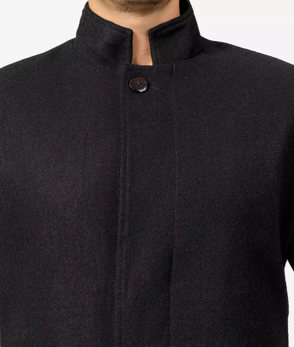 McGhee Men’s Black Trench Long Wool Coat