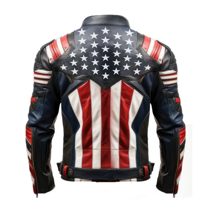 Men’s American Flag Casual Zipper Leather Jacket