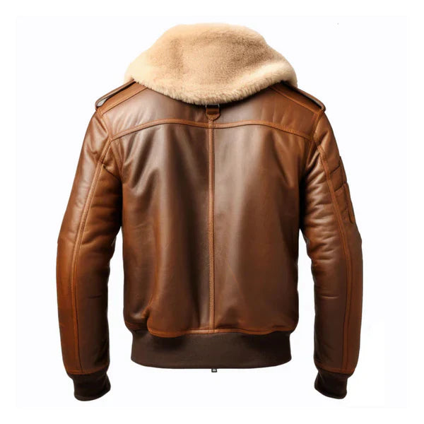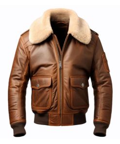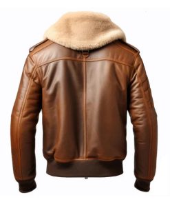 Men’s Aviator Casual Lapel Faux Shearling Brown Leather Jacket