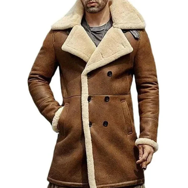 Men’s Aviator Shearling Genuine Brown Leather Coat