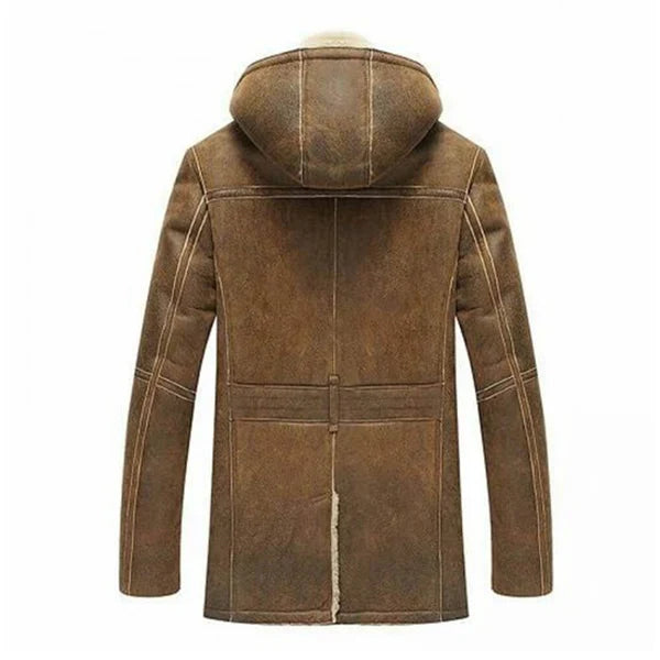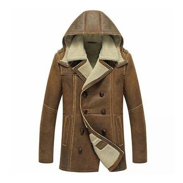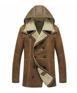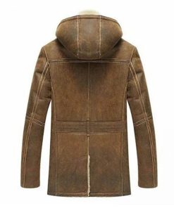 Men’s B3 Hooded Shearling Real Brown Leather Coat