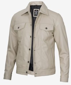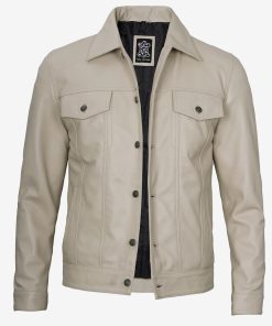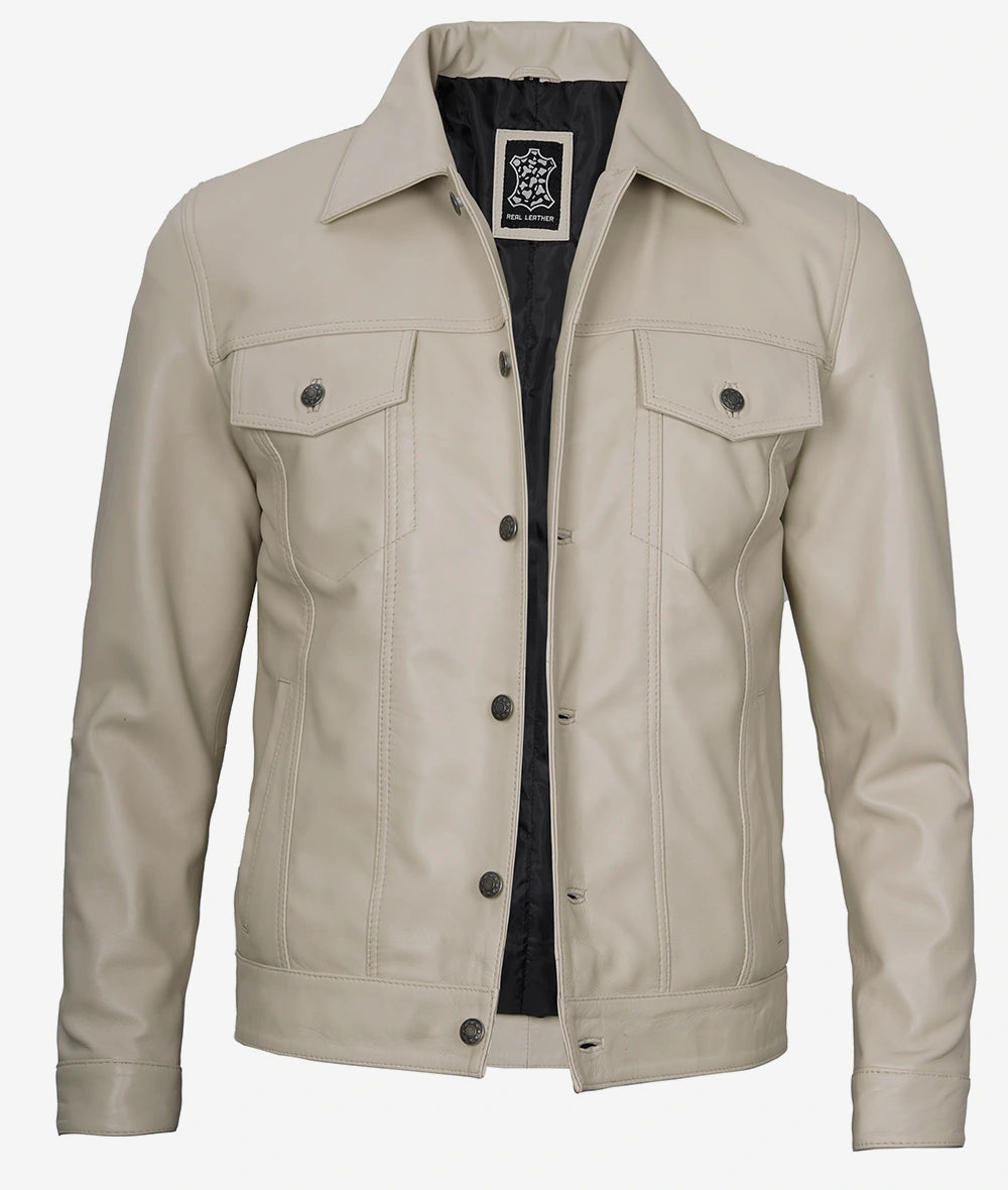 Men’s Beige Real Lambskin Leather Trucker Jacket