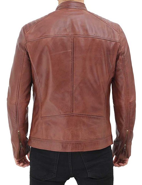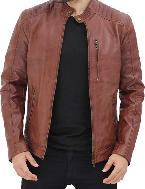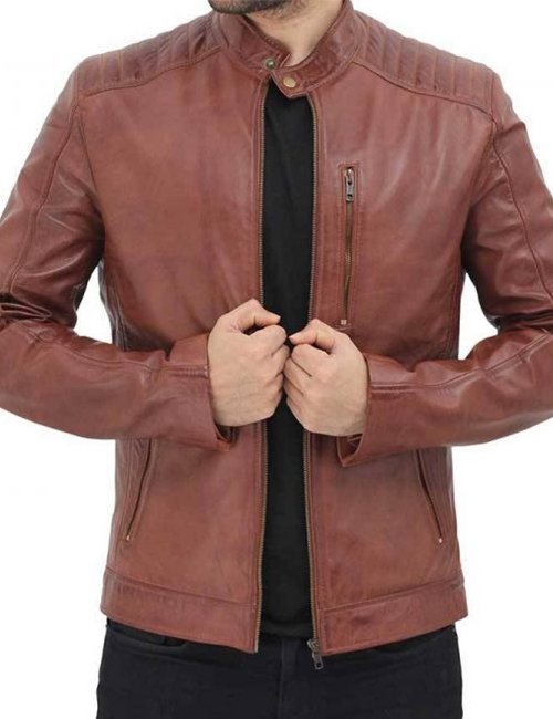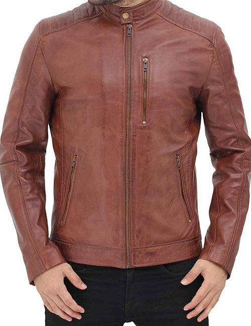Men’s Benjamin Cafe Racer Shoulder Padded Brown Leather Jacket