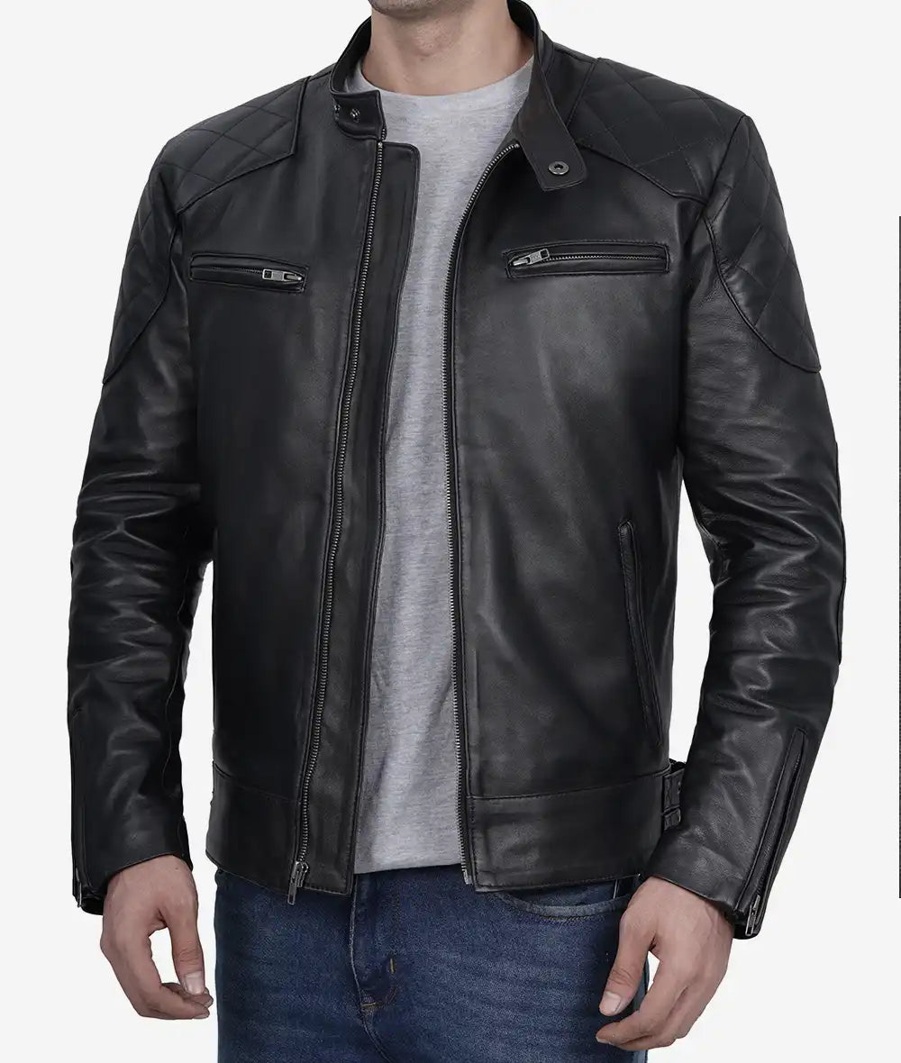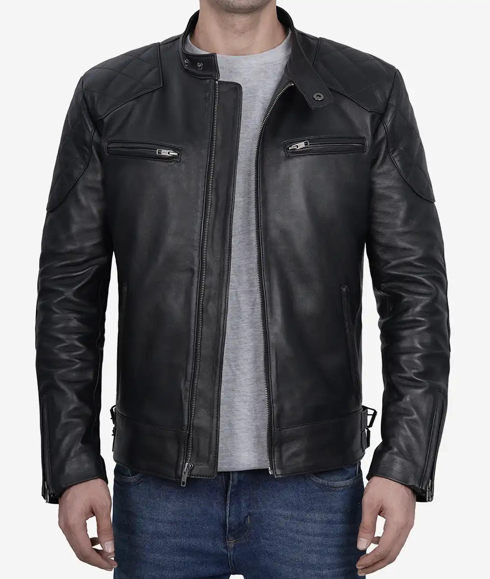 Men’s Black Cafe Racer Leather Jacket