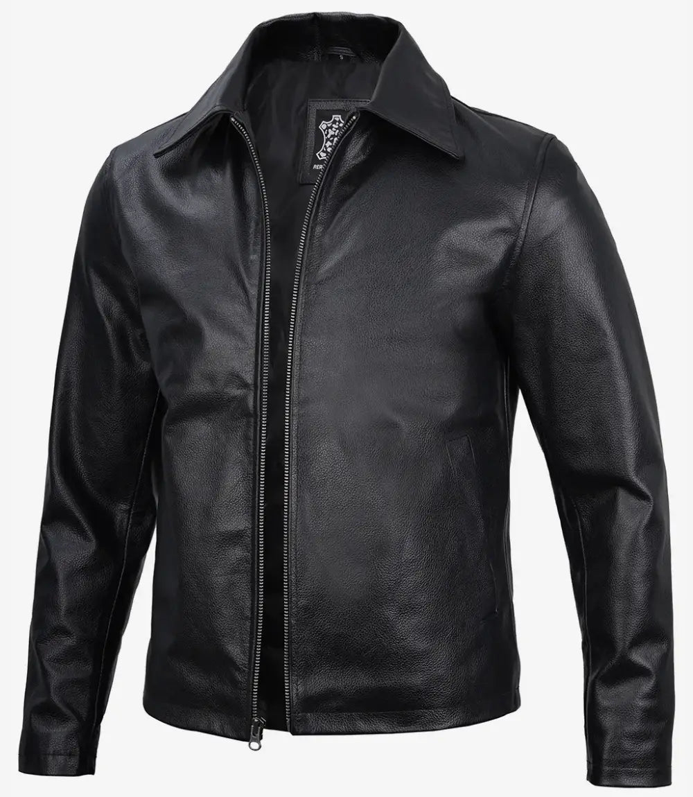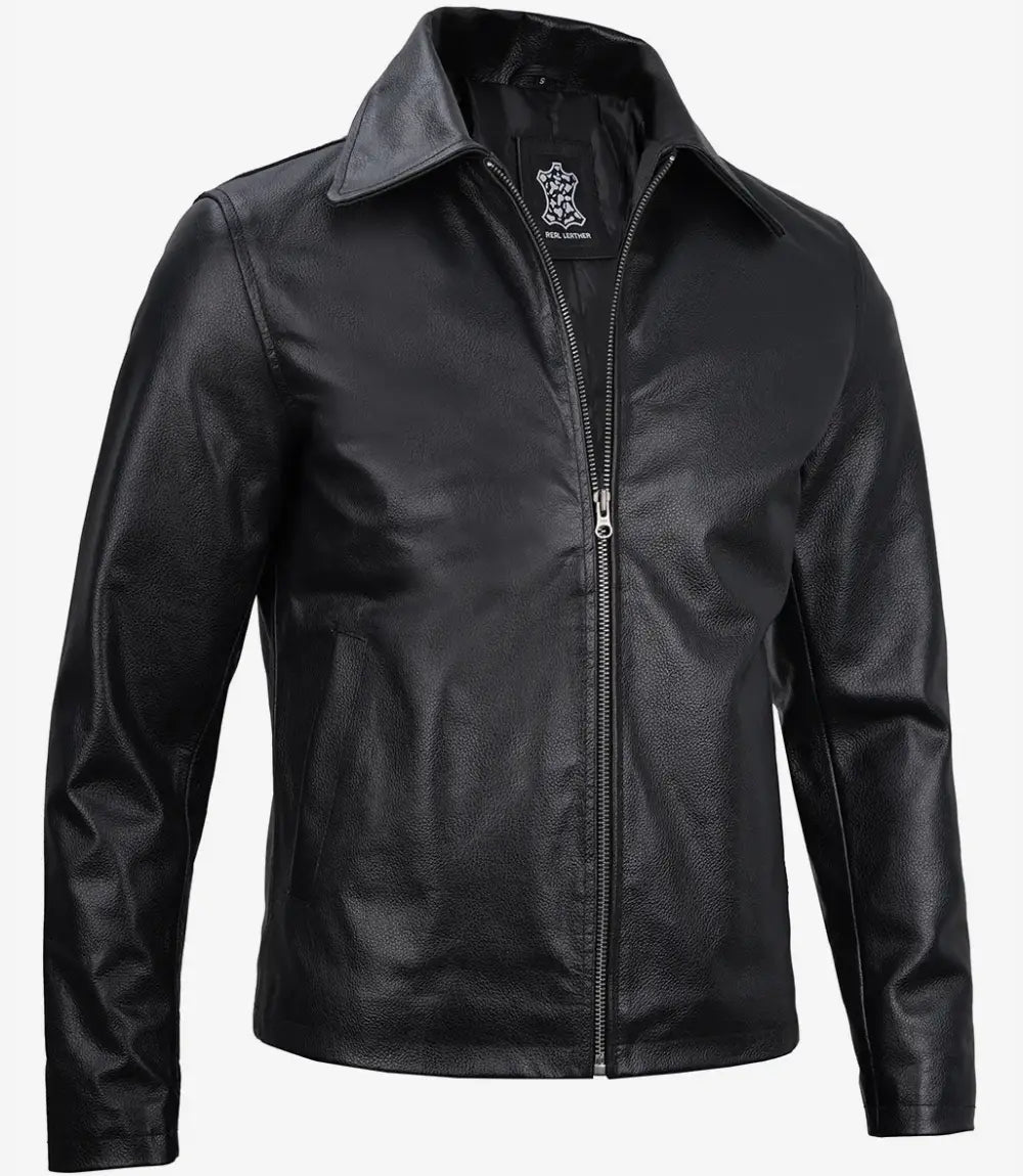 Men’s Black Cowhide Shirt Collar Leather Jacket