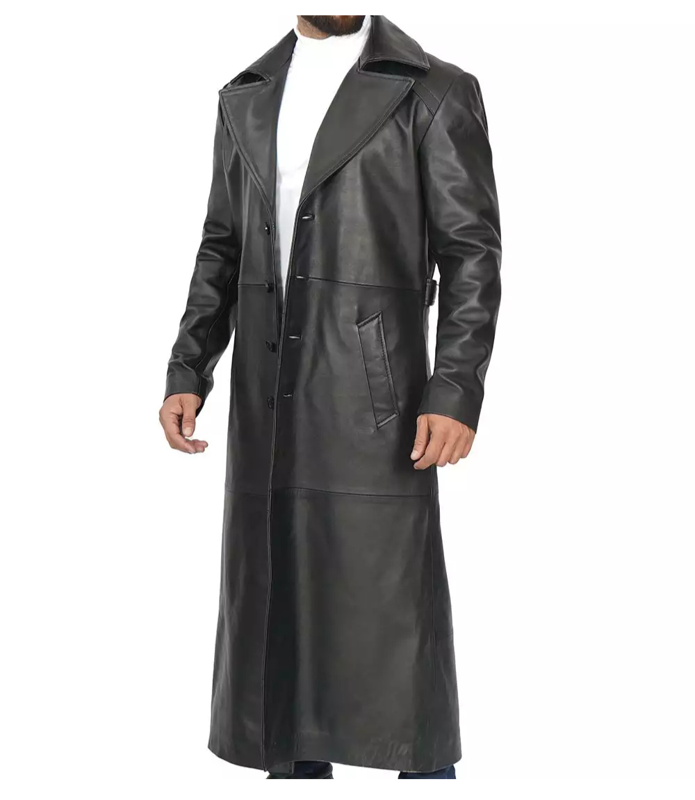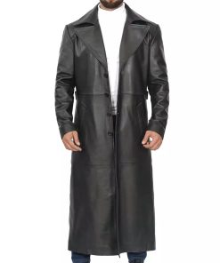 Men’s Black Full-Length Leather Trench Coat