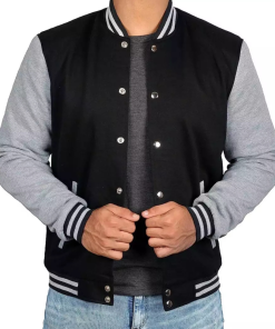 Men’s Black & Grey Baseball Varsity Jacket – Bomber Style