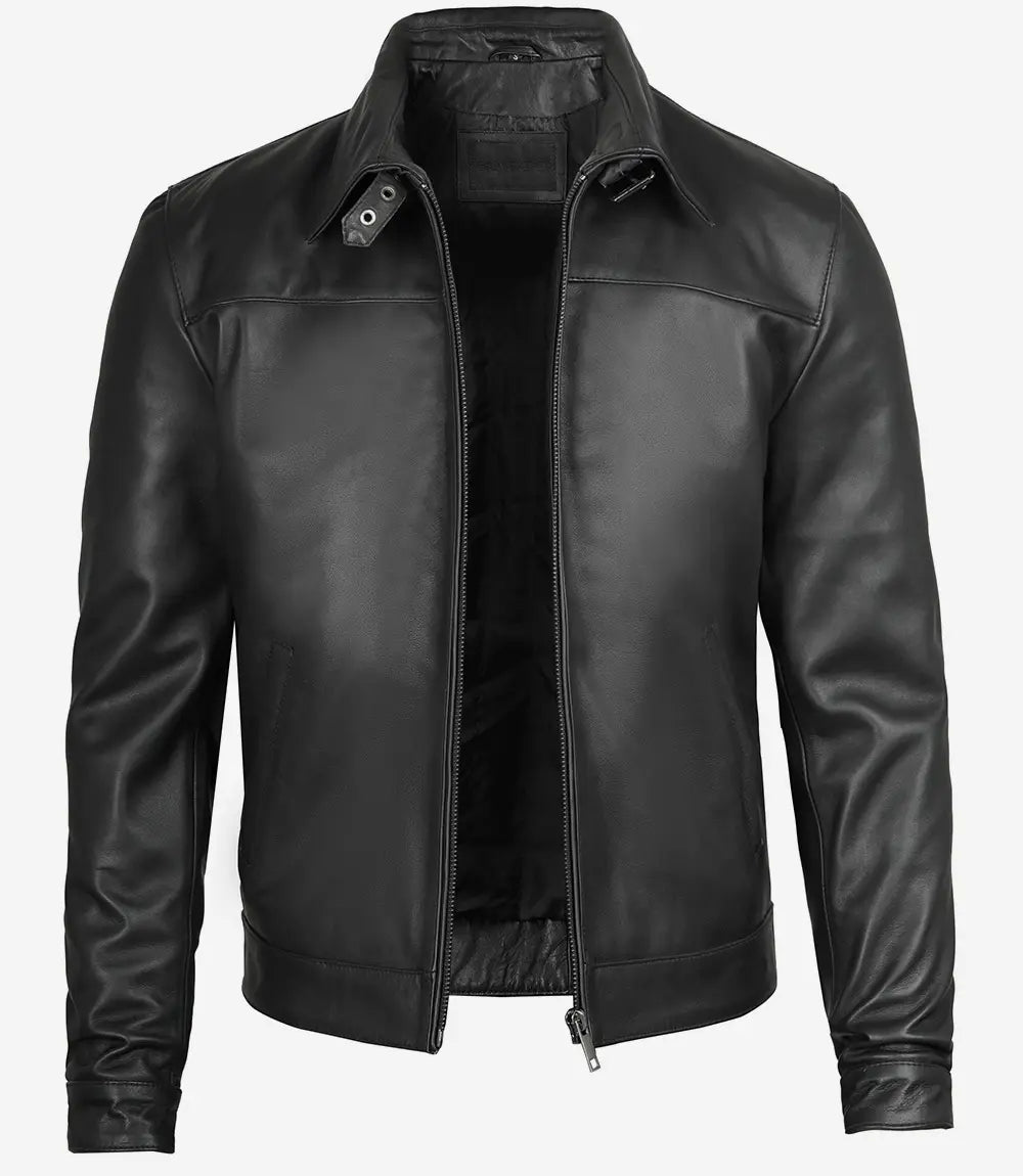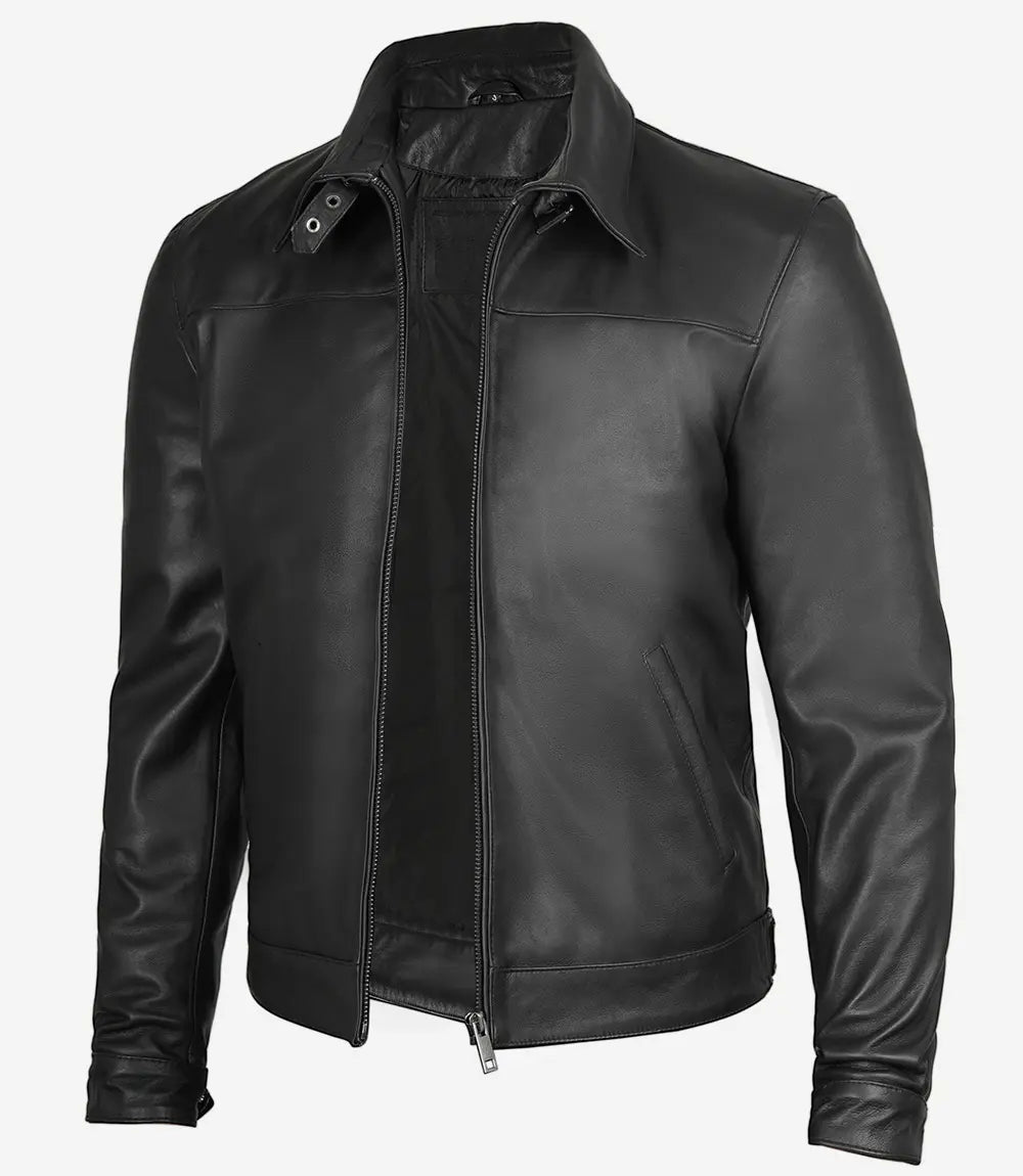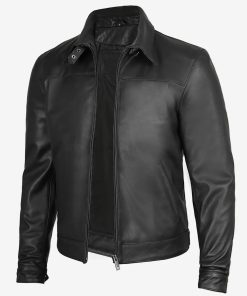 Men’s Black Premium Shirt Collar Real Leather Jacket