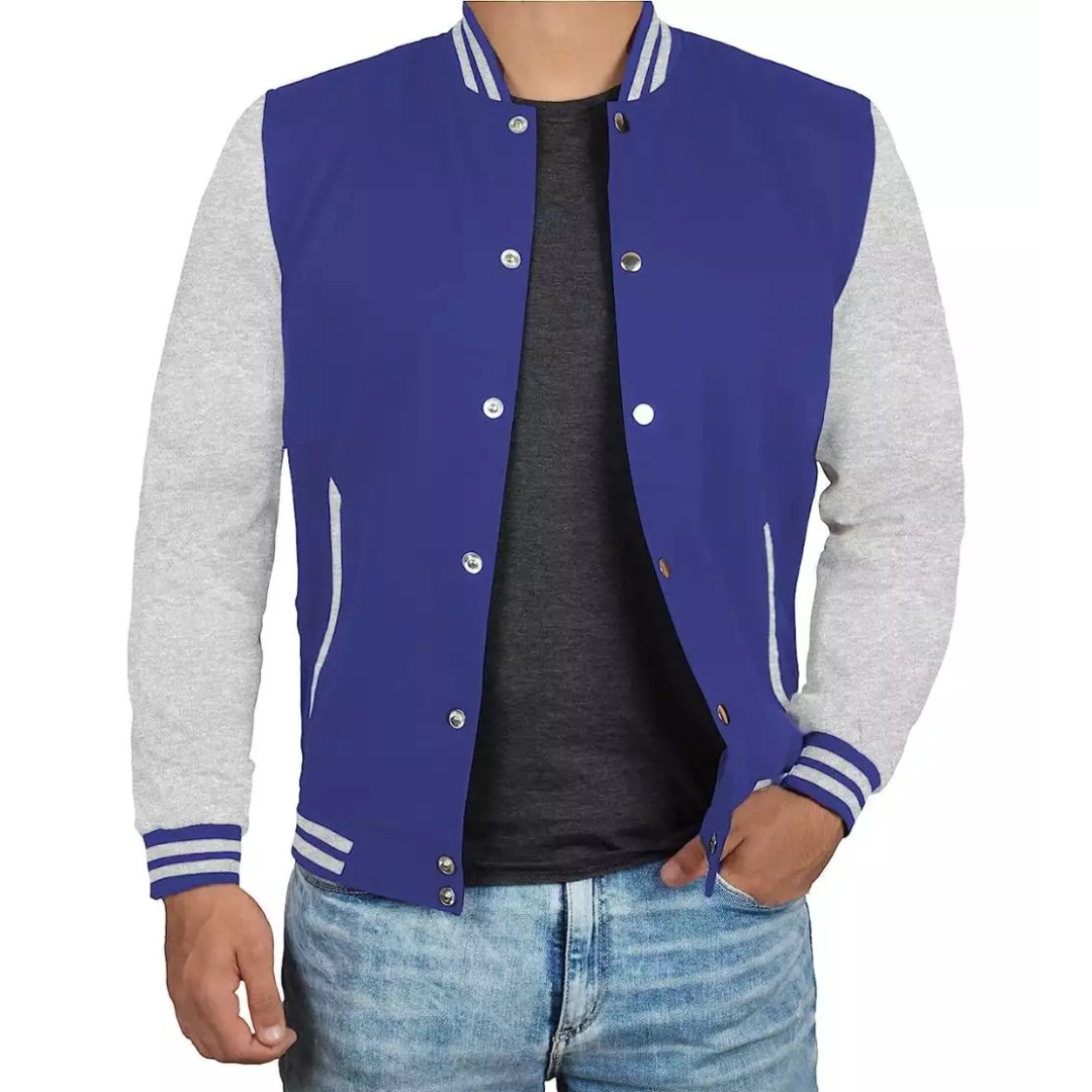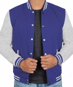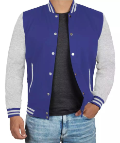 Men’s Blue and Grey Varsity Jacket – Baseball Style Jacket