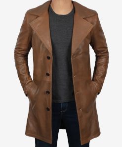 Men’s Brown 3/4 Length Real Lambskin Leather Coat