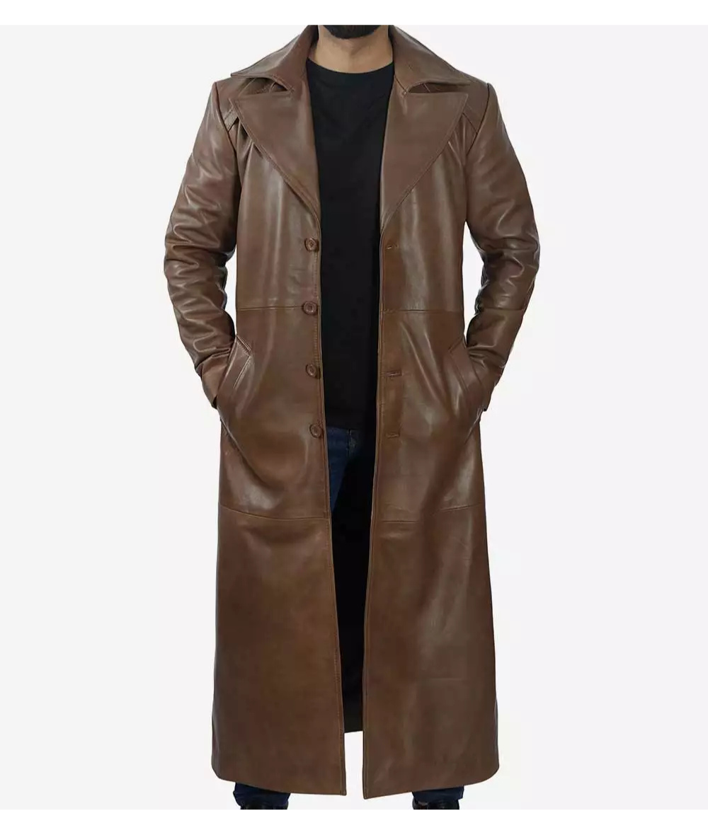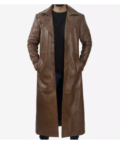 Men’s Brown Full Length Leather Coat – Duster Coat