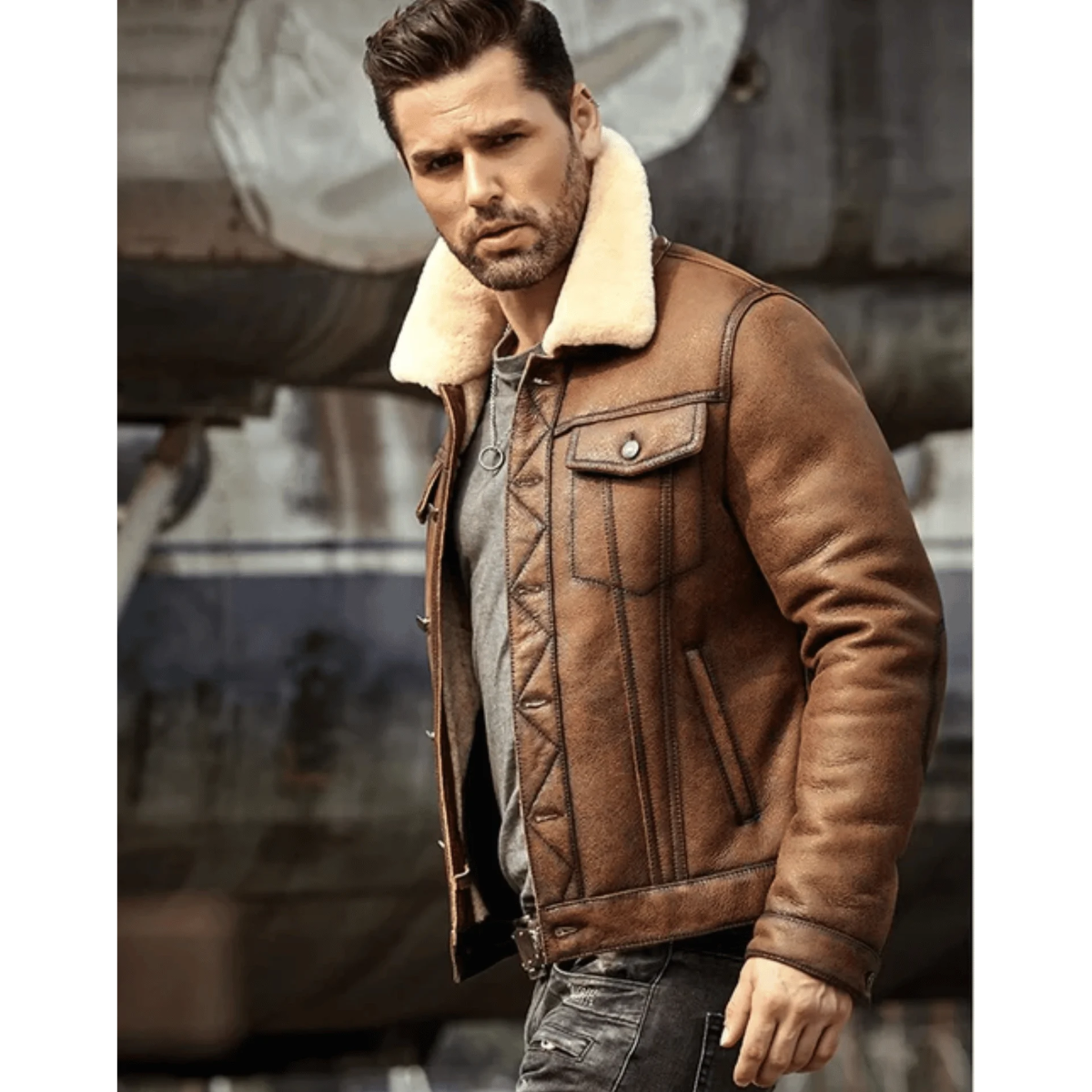 Mens Brown RAF B3 Shearling Leather Jacket