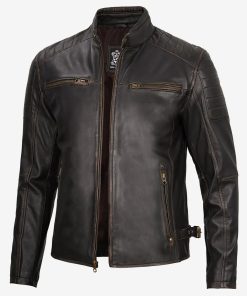 Men’s Brown Rub Off Cafe Racer Leather Jacket