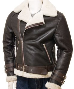 Men’s Brown Shearling Biker Jacket