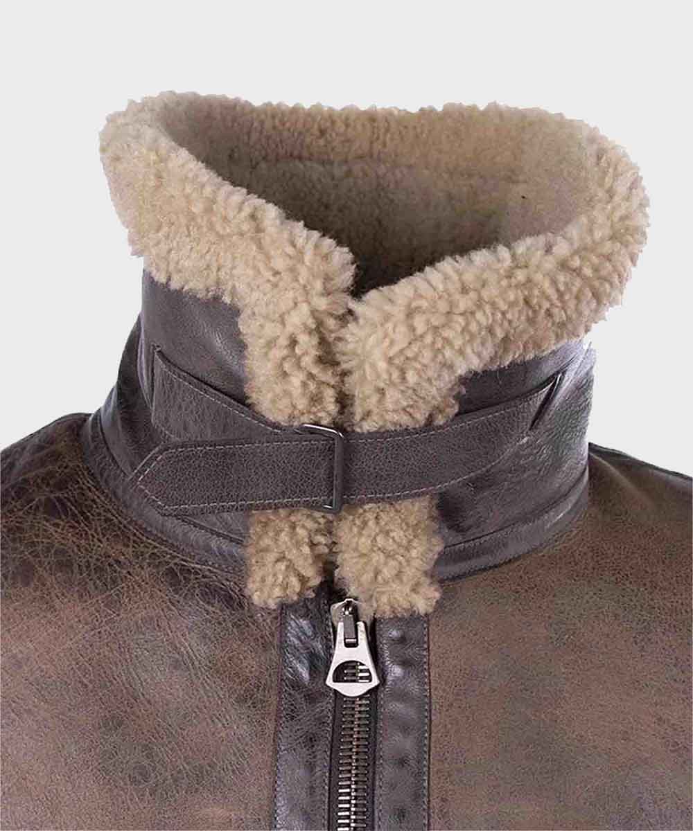 Mens Brown Shearling Distressed Leather Jacket